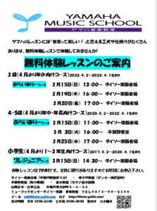 ぷらいまりーコース 3月15日(日) 13:00~ ダイソー楽器会場